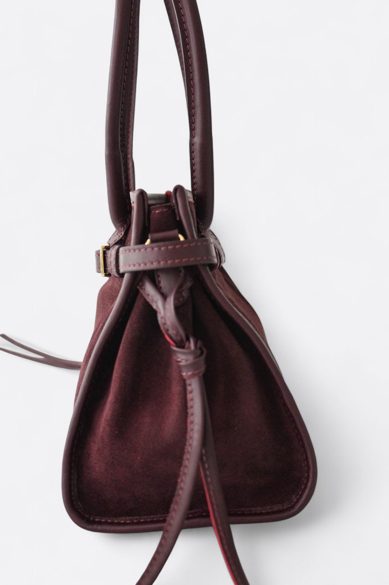 Este bolso ha sido diseñado para la mujer con personalidad que busca calidad y diseño en un solo producto. Se presenta como un bolso de ante estructurado tipo Satchel con detalles en piel lisa. Ideal para el día a día.